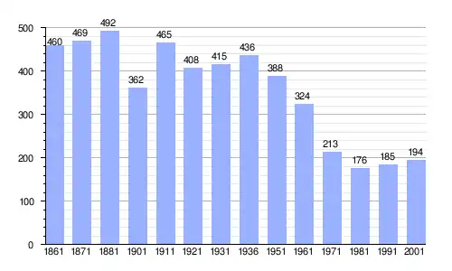 Gráfica de evolución demográfica de Oltressenda Alta entre 1861 y 2001 |