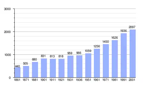 Gráfica de evolución demográfica de Oltrona di San Mamette entre 1861 y 2001 |