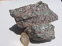 Suele encontrarse asociado a otros minerales como: granate, cuarzo, cianita, corindón, hornblenda, escapolita, epidota o glaucofana.