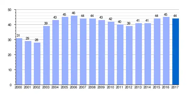 Gráfica de evolución demográfica de Opacua[1] entre 2000 y 2017 |