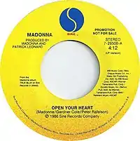 «Open Your Heart» es una canción interpretada por la cantante estadounidense Madonna, incluida en su tercer álbum de estudio, True Blue. La compañía Sire Records la publicó como el cuarto sencillo del álbum en Estados Unidos el 12 de noviembre de 1986 y el 1 de diciembre de ese año en Europa. También figuró como una remezcla en los grandes éxitos The Immaculate Collection (1990) y Celebration (2009). Compuesta por Gardner Cole y Peter Rafelson, en un principio se la concibió como una canción de rock and roll, titulada «Follow Your Heart», y fue ofrecida a la cantante Cyndi Lauper. Madonna la aceptó mientras buscaba temas nuevos para True Blue, reescribió la letra y, junto con Patrick Leonard, cambió la composición para adaptarla al género dance-rock.