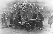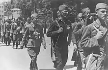 ![]() Partisanos yugoslavos desfilando en las calles de Sarajevo, 6 de abril de 1945. | ||||