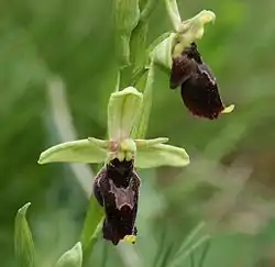 O. × devenesis Híbrido de Ophrys holoserica × Ophrys insectifera (Tod.) Rchb.f., 1851 | |