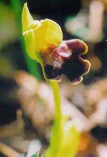 Ophrys flammeola P.Delforge, 2000 es una especie de orquídea terrestre de la familia de las orquidáceas, endémica de Sicilia.