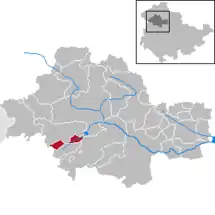Se encuentra ubicado al norte de la ciudad de Eisenach, al noroeste de Erfurt, la capital del estado.