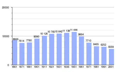 Gráfica de evolución demográfica de Oppido Mamertina entre 1861 y 2001 |