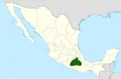Es endémica de los estados de Guerrero, Morelos, Oaxaca, Puebla y Tlaxcala en México.[2][4]