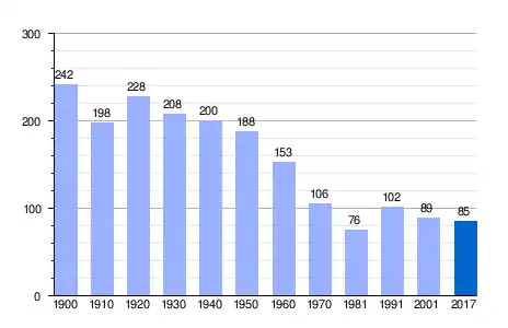 Población de derecho (1900-1991) o población residente (2001) según los censos de población del INE.[4] Población según el padrón municipal de 2017 del INE. |