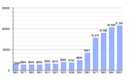 Gráfica de evolución demográfica de Orbassano entre 1861 y 2001 |