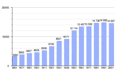 Gráfica de evolución demográfica de Orbetello entre 1861 y 2001 |