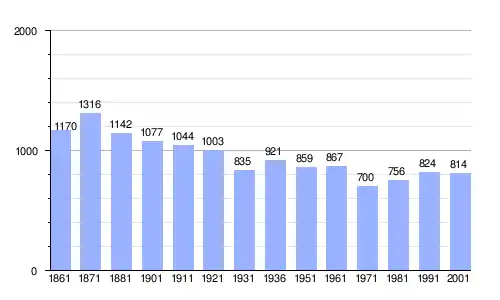 Gráfica de evolución demográfica de Orco Feglino entre 1861 y 2001 |