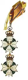 - Caballero 4ª Clase: lleva la insignia en una cinta en el pecho izquierdo.