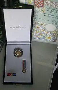 - Parlamento de Croacia (24 de marzo de 1995). «Zakon o odlikovanjima i priznanjima Republike Hrvatske». Narodne novine (en croata) (1995/20). Consultado el 6 de abril de 2014.