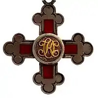 La insignia era una cruz de plata con el monograma entrelazado del Rey Carlos (Karl) y la Reina Olga en el anverso y los años 1870-71 en el reverso. Este emblema fue suspendido de una cinta roja y negra. Los hombres, incluido el rey, lo usaron del ojal de su abrigo o como una medalla militar, mientras que las damas lo usaron suspendido formando un gran lazo en su pecho izquierdo.