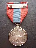 La insignia de la orden para las mujeres tenía el mismo medallón que la de los hombres, rodeada de una corona de laurel plateado y rematado con una corona. Todo suspendido de una cinta color carmesí con una raya central azul.