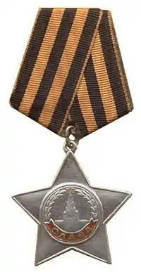 Orden de la Gloria (en ruso, Орден Славы) fue una condecoración militar de la Unión Soviética establecida por Decreto del Presídium del Sóviet Supremo de la URRS del 8 de noviembre de 1943.[1] Fue otorgado a soldados y suboficiales del Ejército Rojo, así como a tenientes subalternos de aviación, por su valentía frente al enemigo. Se otorgó solo por méritos personales, no se otorgaron a unidades o formaciones militares.
