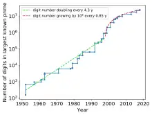 - Chris Caldwell, The Top Twenty: Largest Known Primes at The Prime Pages.