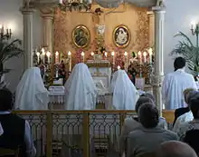 Varios católicos han escrito a favor de la ordenación de mujeres.[75] Grupos disidentes que abogan por la ordenación de mujeres en oposición a la enseñanza católica[76] incluyen la ordenación de mujeres en todo el mundo, la ordenación de mujeres católicas.[77][78][79] Algunos citan la supuesta ordenación de Ludmila Javorová en la Comunista Checoslovaquia en 1970 por el obispo Felix Davídek (1921–1988), él mismo consagrado clandestinamente debido a la escasez de sacerdotes provocada por la persecución estatal, como precedente.[80] La Iglesia Católica trata los intentos de ordenación de mujeres como inválidos y automáticamente excomulga a todos los participantes.[81]