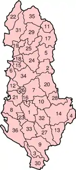 - «HARTA AD MINIST RATIVE TERRITORIALE E QARQEVE TË SHQIPËRISË» (PDF). Reformaterritoriale.al. Consultado el 9 de septiembre de 2017.