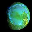 En 2018, los investigadores de Harvard y la UC Davis desarrollaron modelos informáticos que demuestran que un posible resultado de una colisión planetaria es que crea una sinesia, una masa de roca y metal vaporizado que forma un disco bicóncavo que se extiende más allá de la órbita lunar. La sinesia eventualmente se reducirá y enfriará para acretar el satélite y reformar el planeta impactado.[17]