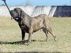 El término "cão de fila" (equivalente a "perro de presa") históricamente ha sido utilizado como un adjetivo para perros en Portugal e Brasil. El verbo Filar significa "capturar fuertemente con los dientes".[4][5]