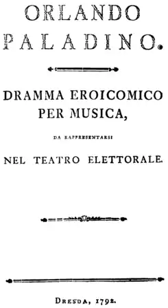 Orlando paladino es una ópera en tres actos de Joseph Haydn, representada por primera vez en Eszterháza el 6 de diciembre de 1782. El libreto de Nunziano Porta está basado en otro libreto, Le pazzie d'Orlando, de Carlo Francesco Badini, al que puso música el compositor P. A. Guglielmi en 1771, inspirado asimismo en el poema épico Orlando furioso de Ariosto. La ópera fue descrita como un drama heroico-cómico, pues la trama mezcla estos elementos. Durante la vida de Haydn fue su ópera más popular.