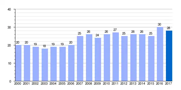 Gráfica de evolución demográfica de Ormijana[1] entre 2000 y 2017 |