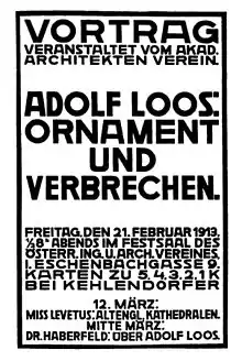 Ornamento y delito (en alemán, Ornament und Verbrechen) es un ensayo y conferencia del arquitecto de la modernidad Adolf Loos que critica el ornamento en objetos útiles.