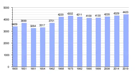 Gráfica de evolución demográfica de Ornans entre 1800 y 2019 |
