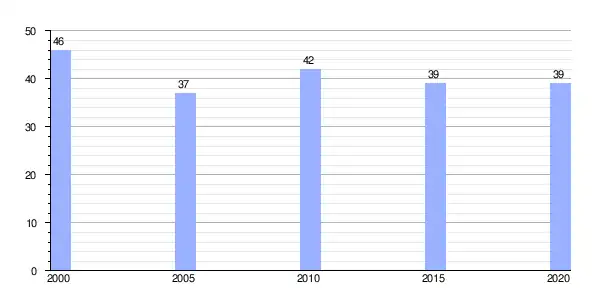 Gráfica de evolución demográfica de Orosa (parroquia) entre 2000 y 2020 |