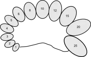 Las cuentas se comparan con los testículos del paciente, y el volumen se toma de la cuenta más similar en tamaño al testículo. Las cuentas del 1 al 3 se consideran tamaños prepuberales, las de 4 y superiores, puberales, y las del 12 hasta el 25, adultos.