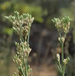 Es una planta ± glauca, con cepa leñosa. Tallos de hasta 30(60) cm de altura, de aspecto junciforme, erectos -raramente postrados-, muy ramificados desde la base, con ramas rígidas, angulosas, a menudo fuertemente escábridas en la parte superior. Hojas 5-15(20) x 1-2 mm, más cortas que los entrenudos, sésiles, enteras, aquilladas, glabras, con frecuencia escábridas en el margen; estípulas escariosas, casi setáceas, hinchadas basalmente en una glándula persistente, purpúrea. Brácteas florales escariosas, linear-lanceoladas, de margen y quilla escábridos y 2 pequeñas glándulas purpúreas en su base. Sépalos 2-2,5(3) mm, ovado-lanceolados, ± agudos, aquillados y escábridos en la quilla, verduscos, de ancho mar-gen escarioso, habitualmente sublaciniado. Semillas pequeñas, fusiformes, meladas.[1][2]