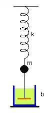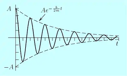 Donde es un coeficiente que mide el amortiguamiento debido a la viscosidad. Si es pequeño, el sistema está poco amortiguado. Nótese el signo negativo que indica, como antes, que si la velocidad es positiva, la fuerza tiene la dirección superior opuesta a la velocidad de la partícula. Con este término complementario la ecuación diferencial del sistema es: