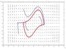 El teorema de Liénard prueba que el sistema tiene un ciclo límite. Aplicando la transformación de Liénard , donde el '.' indica derivada, la ecuación se puede escribir en forma bidimensional:[8]