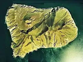 Debido al aislamiento y la actividad volcánica de la isla, casi no hay registros de su pasado. El monte Kanpo (寛保岳 Kanpo-dake?) tuvo una gran erupción el 27 de agosto de 1741,[4] que creó una gran caldera en forma de herradura que se rompió hacia el norte y se extendió desde la cumbre hasta el fondo del mar en la base del volcán.[5] Este evento produjo una avalancha de escombros principalmente submarinos que recorrió 16 km de distancia y provocó un gran tsunami. El tsunami devastó las costas de Hokkaidō, el oeste de Honshu y hasta Corea, causando casi 1500 muertes. La erupción de 1741 fue la más grande en el tiempo histórico en Oshima-Oshima y terminó con la construcción de un cono de ceniza basáltica en la cabeza de la caldera.[6] No se han producido erupciones desde la última erupción en 1790, pero ocurrieron disturbios sísmicos debajo del volcán en 1996.