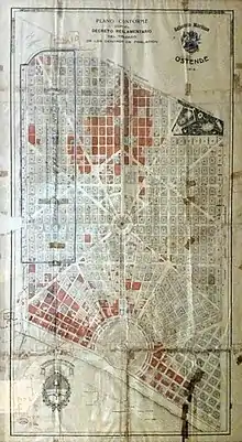 Ostende nació como un proyecto de los belgas Fernando Robette y Agustín Poli quienes llegaron en 1908 con el plan de hacer una ciudad gemela a la Ostende de Bélgica.[3] Le compraron la zona dunícola de los campos del terrateniente Manuel Guerrero con un proyecto urbanístico-turístico diseñado por los arquitectos franceses Chapeaurouge y Auguste Hughier y los ingenieros Weber y Luis Manuel Gilardon. El mismo que contemplaba avenidas, diagonales, reservas para edificios públicos, estación de tren, cementerio, corralón municipal y una avenida central de más de 50 m de ancho.