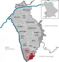 Se encuentra ubicado al oeste del estado, en la región de Suabia, a la orilla del río Iller que lo separa del estado de Baden-Wurtemberg.