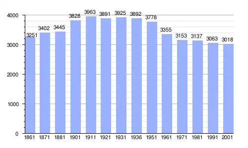 Gráfica de evolución demográfica de Ostiano entre 1861 y 2001 |