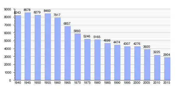 Gráfica de evolución demográfica de Otari entre 1940 y 2015 |