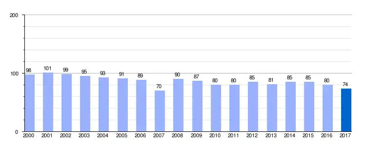 Gráfica de evolución demográfica de Otero entre 2000 y 2017 |