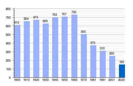 Población de derecho (1900-1991) o población residente (2001) según los censos de población del INE.[10] Población según el padrón municipal de 2020 del INE. |