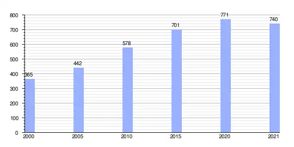 Gráfica de evolución demográfica de Otero de Rey (villa) entre 2000 y 2021 |