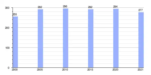 Gráfica de evolución demográfica de Otero de Rey (parroquia) entre 2000 y 2021 |