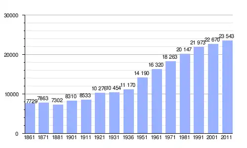Gráfica de evolución demográfica de Ottaviano entre 1861 y 2011 |