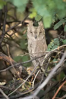 El autillo persa (Otus brucei),[2] también conocido como autillo estriado o autillo pálido,[3] es una especie de ave estrigiforme de la familia Strigidae nativa de Asia.