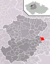 Se encuentra ubicada al noroeste de la región y de Praga, a poca distancia al norte del río Berounka —un afluente izquierdo del río Moldava—, y cerca de la frontera con la región de Ústí nad Labem.[1]