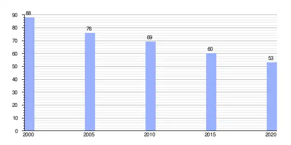 Gráfica de evolución demográfica de Ourol entre 2000 y 2020 |
