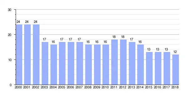Gráfica de evolución demográfica de Outeiro de Arriba entre 2000 y 2018 |