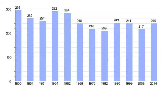 Gráfica de evolución demográfica de Ouville-la-Bien-Tournée entre 1800 y 2014 |