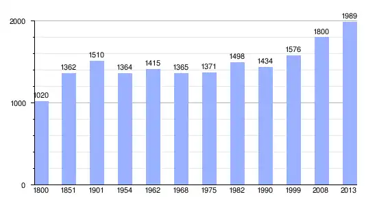 Los datos demográficos contemplados en este gráfico de la comuna de Ouzouer-le-Marché[3] se han cogido de 1800 a 1999 de la página francesa EHESS/Cassini, y los demás datos de la página del INSEE.[4]